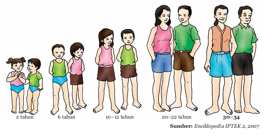 Masa pubertas umunya terjadi pada masa remaja, yaitu 12-14 tahun. Pubertas wanita ditandai dengan dimulainya siklus menstruasi dan perubahan fisik seperti tumbuhnya buah dada dan rambut pada pubis. Pada pria, pubertas umumnya terjadi pada usia 13-15 tahun. Pada saat tersebut, dihasilkan hormone oleh kelenjar pituitary yang juga menyebabkan perubahan fisik, seperti tumbuhnya kumis, pecahnya suara, tumbuh rambut pasa ketiak dan pubis, serta otot semakin kuat.