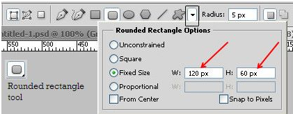 Pilih Rounded rectangle tool pada toolbox, kemudian atur seperti berikut ini :